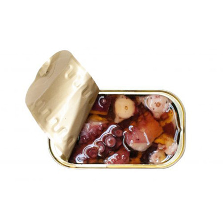 Ingredients: Octopus (Octupus bulgaris) (62.5%), extra virgin olive oil (36%), garlic (0.7%) and salt.