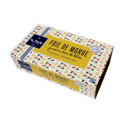 Smoked cod liver with beech wood, 120g. Cod is fished off Iceland and processed fresh by hand. In the greatest respect of the tradition, its liver is smoked with beech wood, It is then delicately put in whole box, without any addition of aroma or oil.