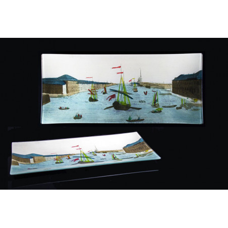 Decoratif plate with a panoramic view from Saint-Petersbourg, 40 x 17 cm. "John Derian & Company", New York.