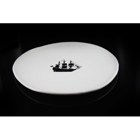 Assiette plate à décor de vieux vaisseau, diamètre 20 cm.