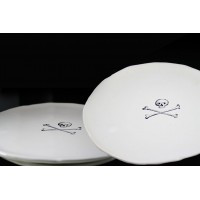 Assiette plate à motif de tête de mort, diamètre 20 cm.