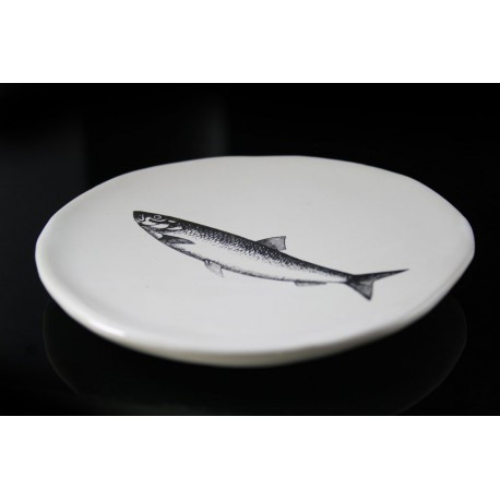 Petite assiette plate à motif de poisson, diamètre 11,5 cm.