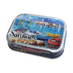 This year, the traditional limited edition box honors the painter Jean-Jacques Barzic. The work represents Fort Cigogne in the Glénans archipelago. Collectible box once the sardines have been tasted.