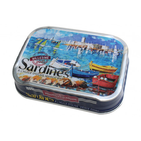 Seasonal sardines in olive oil, vintage 2021, 115g. Do not hesitate to let them age, they improve over time.