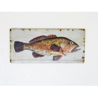 Peinture originale sur bois flotté, motif de mérou, 45 x 85 cm.