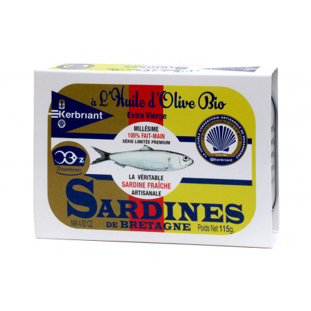 Vintage Brittany sardines in organic olive oil, 115g.