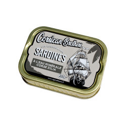 Sardines with Corsican mineral water Zilia, 115g.The mineral water Zilia is "the water of the Corsican mountains", its weak minerality makes it very digestible.