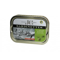 Sardinettes in extra virgin olive oil, 100g. "Jacques Gonidec", the reference brand of "Mouettes d'Arvor".