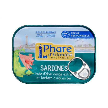 Sardines with organic seaweed tartare, prepared in the old fashion, 135g. Sustainable fishing and labeled MSC. Brittany sardines, organic Roscoff seaweed.
