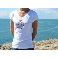 T-shirt Sardines Pirates. Femme. Col en V.Taille S