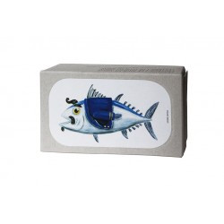 Belly meat tuna in olive oil, 120g. Beautiful cardboard packaging and original image by André Letria. Ideal for a small gift.