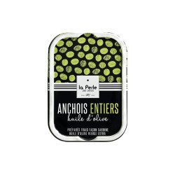 Anchois entiers à l'huile d'olive vierge extra, 115g.