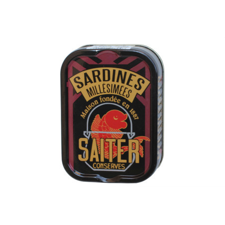 Pêchées et mises en boîte en France. Poisson frais préparé à la main par la Maison Saiter fondée en 1887 à Trouville-sur-mer.