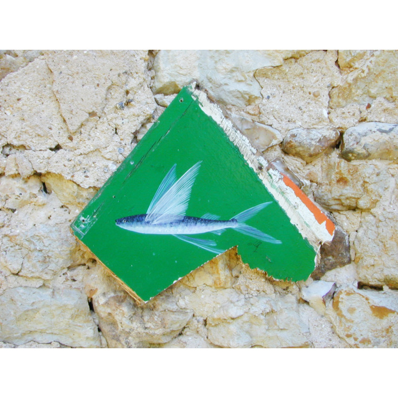 Peinture originale sur bois flotté, motif de poisson volant, 31 x 35 x 1,5 cm, par Diane Loranchet.