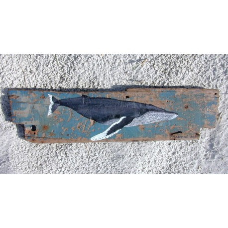 Baleine à bosse sur bois provenant d'un gommier (Martinique) , 15 x 58 cm, par Makore, 2011.