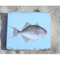 Peinture originale sur bois flotté, motif de baliste, 42 x 47 x 5 cm.