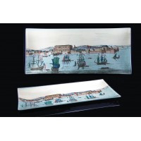 Plat décoratif avec vue panoramique de Bombay, 40 x 17 cm. "John Derian & Company".