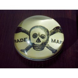 Presse-papiers avec motif "tête de mort", dôme de verre, hauteur 4,5 cm, diamètre 9 cm.