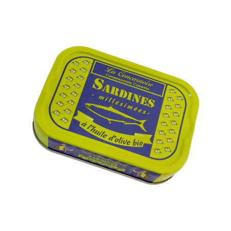 Sardines millésimées à l'huile d'olive Bio, 115g.
