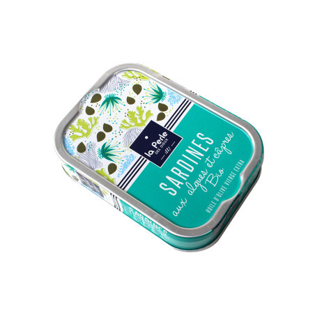 Sardines fraîches 70%, huile d'olive vierge extra* 11,3%, câpres* 6,4% (câpres*, eau, vinaigre d'alcool*, sel), mélange de 3 algues* 4,3% (laitue de mer : Ulva sp., dulse : Palmaria palmata, haricots de mer : Himanthalia elongata), cornichons*, sucre*, vinaigre d'alcool*, sel, vinaigre de plantes*, oignons*, ail*, *20% des ingrédients agricoles sont issus de l'agriculture biologique FR-BIO 09
