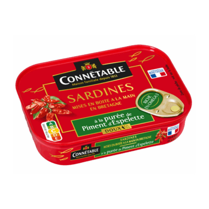 Sardines à la purée de piment d'Espelette doux et à l'huile d'olive, 115g.