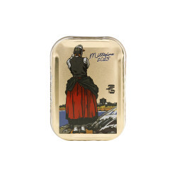 Sardines millésimées, pêchées localement et emboîtées fraîches à l’été 2025. Boîte illustrée par Géo-Fournier, célèbre pour ses peintures inspirées du patrimoine maritime, de la vie côtière en pays bigouden.