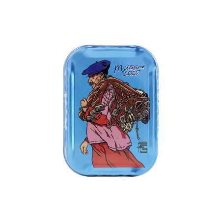 Sardines millésimées, pêchées localement et emboîtées fraîches à l’été 2025. Boîte illustrée par Géo-Fournier, célèbre pour ses peintures inspirées du patrimoine maritime, de la vie côtière en pays bigouden.