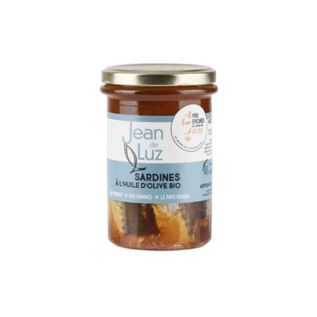 Sardines à l'huile d'olive vierge extra biologique, 320g. "Jean de Luz".