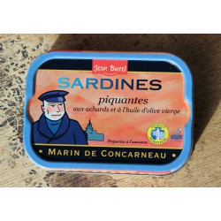 Sardines piquantes à l'huile d'olive vierge " Marin de Concarneau", 115g. "Jean Burel".