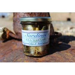 Sardines à la wakamé à l'huile d'olive issue de l'agriculture biologique, bocal de 320g. Les fameuses "Sardines Debout".