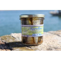Sardines à l'huile d'olive issue de l'agriculture biologique, bocal de 320g. Les fameuses "Sardines Debout".