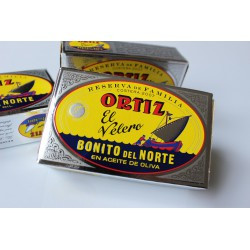 Thon blanc germon millésimé à l'huile d'olive "Réserve de famille". Saison 2021, 112g. Conservas Ortiz.