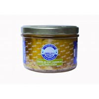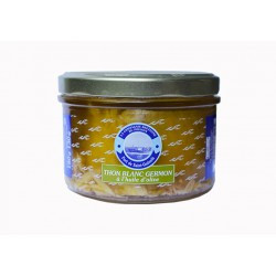 Thunnus allalunga pêché dans le Golf de Gascogne en septembre-octobre pendant la pleine saison, notre thon blanc Germon est travaillé frais découpé au couteau et emboîté main. Réputé pour sa chair fine et claire, il est présenté ici entier à l'huile d'olive issue de l'agriculture biologique : moelleux à souhait, mettez-le en salade ou accompagnez-le de tagliatelles. Poids net égoutté : 130g.