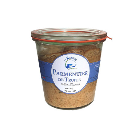 Ingrédients : Pomme de terre (50%), truite (21%), saumon fumé, crème, huile d’olive, ail, sel, persil.